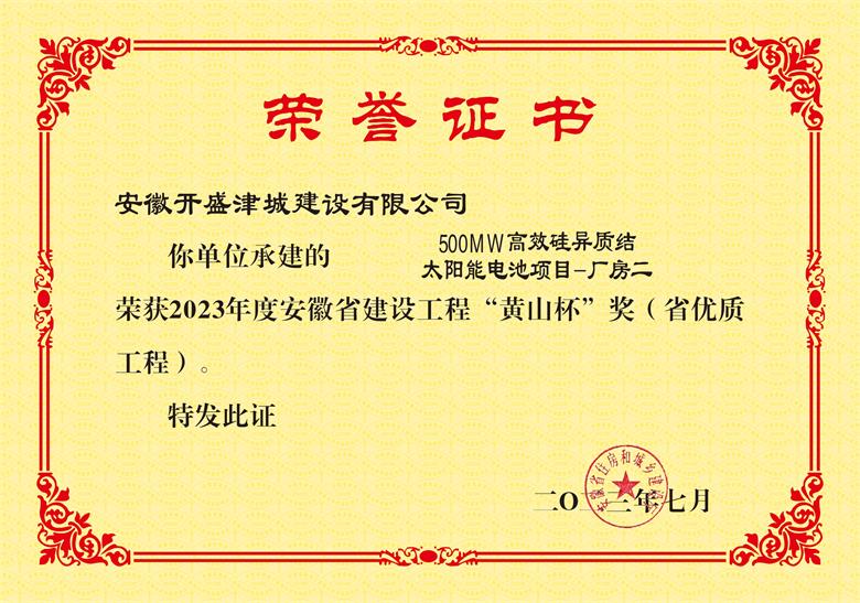 • 黃山杯--“500MW高效硅異質(zhì)結(jié)太陽(yáng)能電池項(xiàng)目-廠房二”